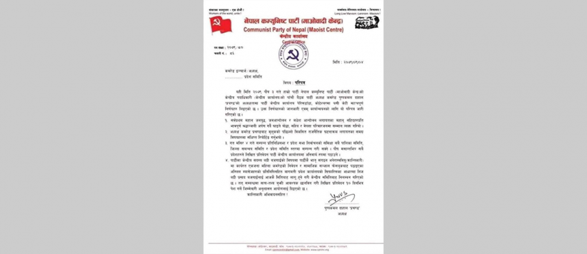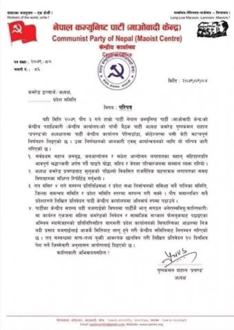 प्रचण्डले किन गरे आफ्नै केन्द्रिय सदस्यलाई कारबाही ?