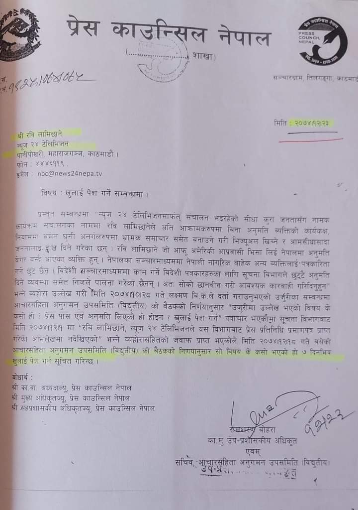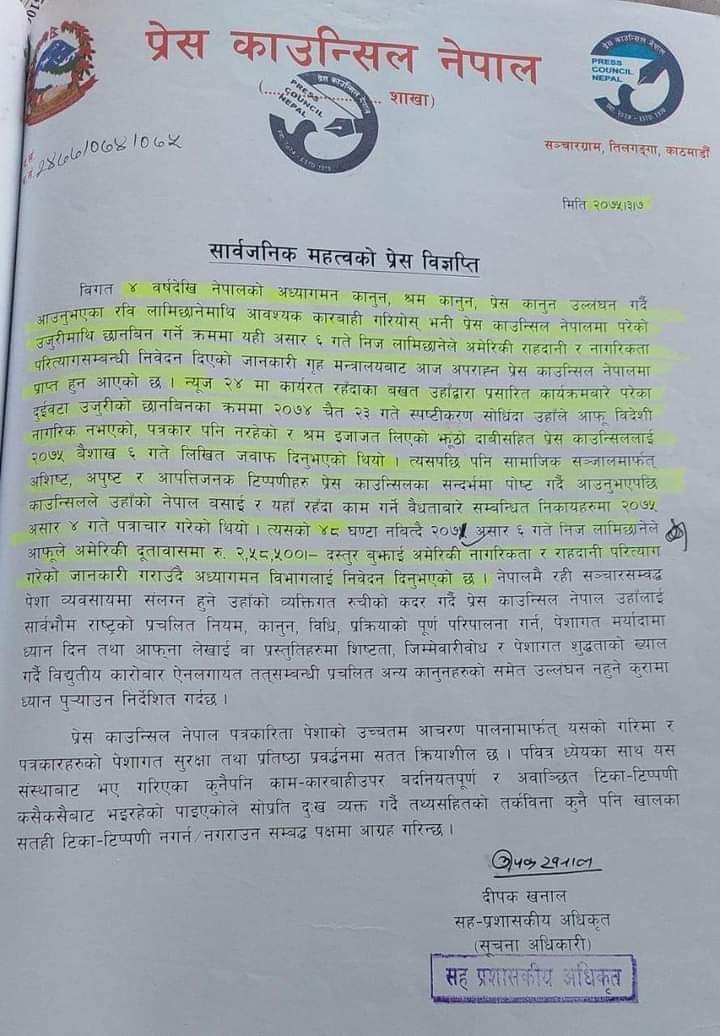 यस्तो थियो प्रेस काउन्सिलसँगको रविको नागरिकता बारेको जवाफ: