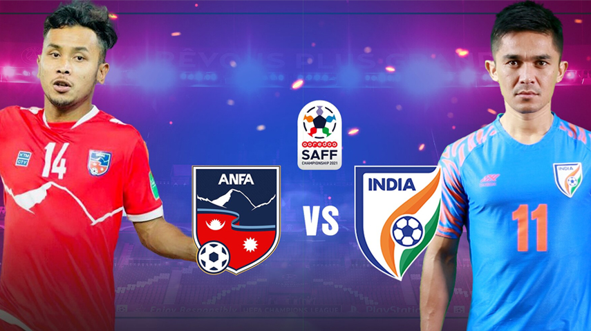 काठमाडौं, ८ असार । भारतमा जारी साफ च्याम्पियनसिप फुटबल अन्तर्गत आज दुई चिरपरिचित प्रतिद्वन्द्वी नेपाल र भारत खेल्दै छन् । बैंगलोरको श्री कान्तिराव रङ्गशालामा हुने खेल नेपाली समय अनुसार बेलुका पौने ८ बजेदेखि सुरु हुने छ ।