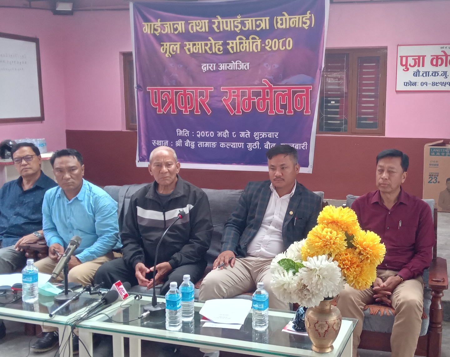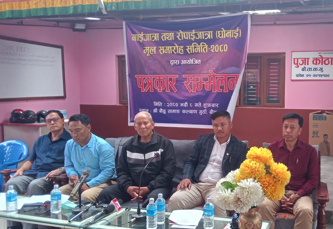 काठमाडौ महानगरपालिका वडा नम्बर ६ र बौद्धनाथ क्षेत्र बिकास समितिको आर्थिक सहयोगमा गाइजात्रा तथा रोपाइँजात्रा(घोनाइ) मनाउन लागेको आज बौद्ध तामाङ गुठीमा आयोजित पत्रकार सम्मेलनमा जानकारी दिइयो।