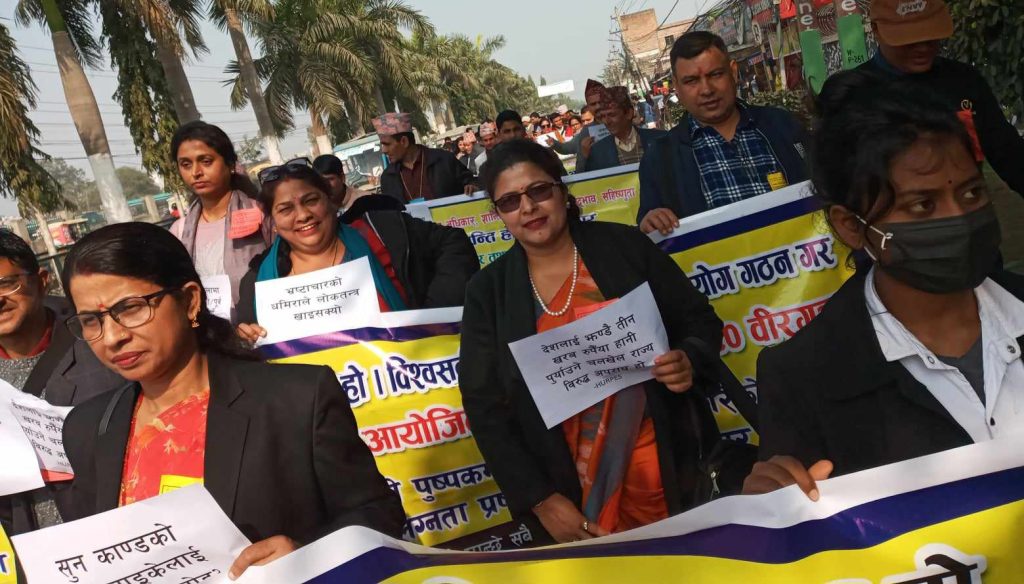 प्रधानमन्त्री सहित पूर्व प्रधानमन्त्रीहरुलाई कारवाहीको माग गर्दै प्रदर्शन