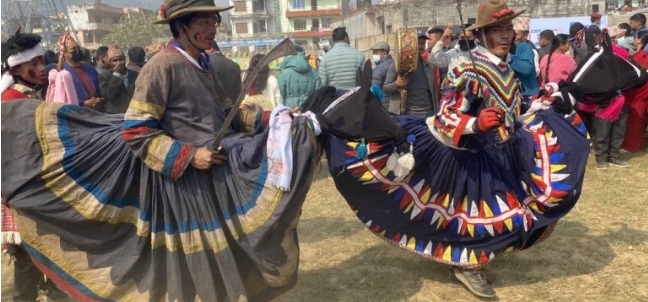 त्रिशूली (नुवाकोट), १ फागुन। नुवाकोटको विदुरमा जारी आठौँ नुवाकोट महोत्सव अवलोकन गर्न आउनेलाई किस्पाङ गाउँपालिका–४ साल्मेका तामाङ समुदायद्वारा प्रस्तुत घोडा नाचले आकर्षित बनाएको छ ।