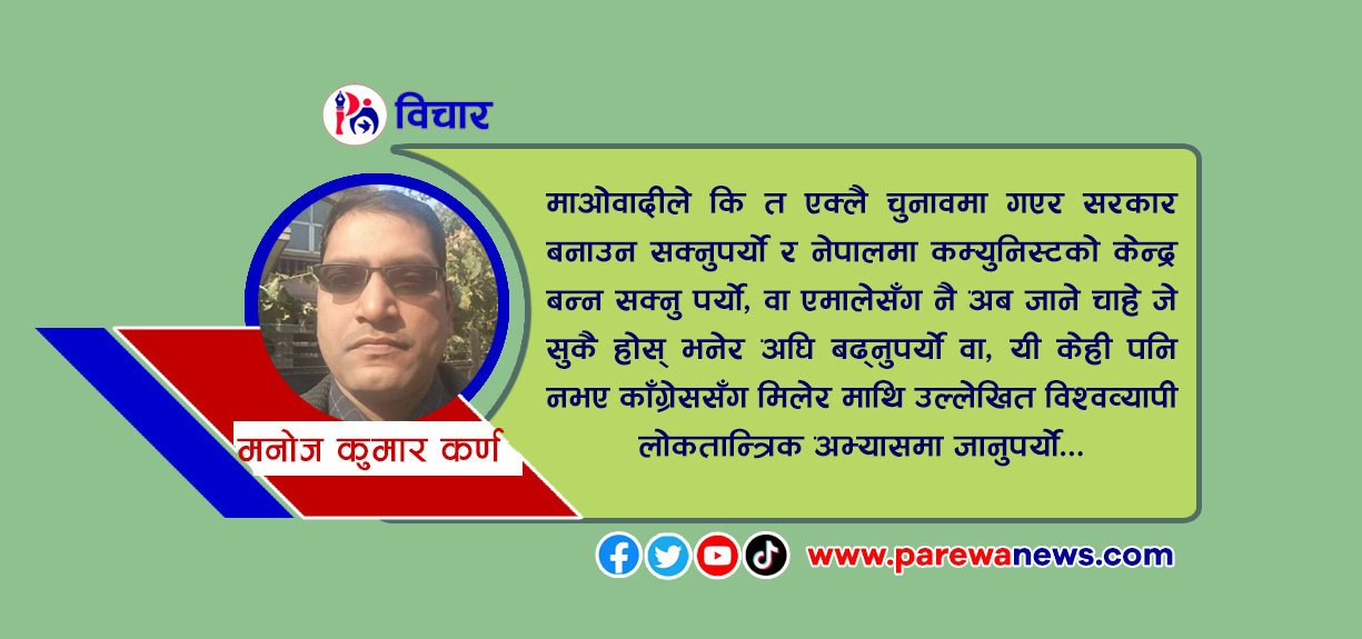अवश्य नै, माओवादीकाे माथि उल्लेखित उसलाई परिणाम थाेरै आउने तर स्वयंकाे दलकाे अस्तित्वलाई खत्तरामा राखेर देशमा दुई ठूला दललाई सरकार बनाउन दिएर प्रतिपक्ष कमजाेर बनाउनमा सहायककाे भूमिक भविष्यमा खेल्नेले समग्रमा देशकै लाेकतन्त्र कमजाेर हुने, साना दलकाे अस्तित्वमा संकट पर्ने, परिवर्तन पक्षधरहरू कमजाेर भई २०४७ सालकाे संविधानमा राजालाई मात्र हटाएर रमाउनेहरू काँग्रेस-एमालेमा उत्साहित भई प्रतिगमनकारी राप्रपापनि सत्तारूढ हुने भई याे २०७२ सालकाे संविधानमाथि नै दुर्घटना हुने डर बढ्याे । जबकि हाल यस २०७२ सालकाे संविधानमा धर्मनिरपेक्षताकाे नाममा बाहिरबाट विशेष समुदायका मान्छेबाट भईरहेकाे हिन्दू-बाैद्ध धर्ममाथिकाे आक्रमणलाई राेकेर सनातन हिन्दू बाहुल्य देश घाेषणा गरेर मधेशी, आदिवासी, जनजाति, दलित आदिका २०७२ सालमा बाँकी रहेका मुद्यालाई संविधान संशाेधन गर्दै गएर संघीयता र प्रदेश सरकारलाई पूर्ण कार्यान्वयनमा लानुपर्नेछ ।