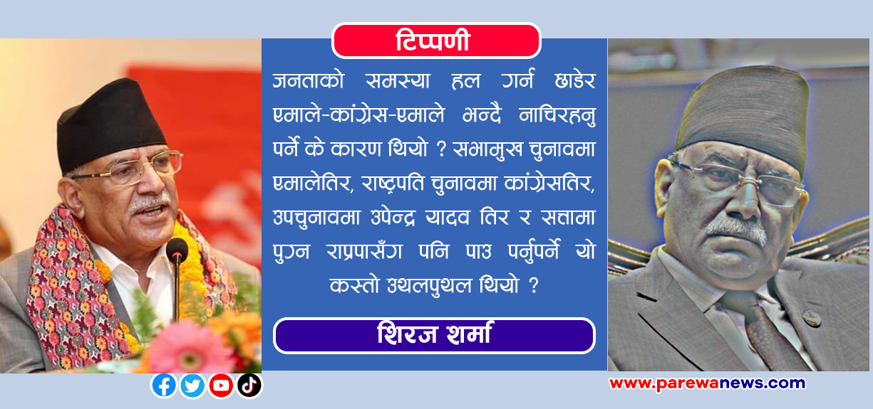 पछिल्लो राजनीतिक घटनाक्रमलाई हेर्दा सत्ताका लागी बाँचुन्जेल ‘उथलपुथल’ गरिरहन्छु भन्ने प्रचण्ड आफैं उथलपुथलको भुमरीमा किन परेका होलान् । धोका,धोका र फेरि पनि धोका दिन खप्पिस प्रचण्डले अहिले एमाले अध्यक्ष केपी शर्मा ओलीबाट अप्रत्याशित धोका पाएको भनिरहेका छन् । रातारात एमाले-कांग्रेस सत्ता समीकरण हुँदा प्रचण्डलाई धोका भएको माओवादीका अन्य नेताहरूको पनि बुझाइ छ। त्यसैले उनीहरु चाहेर वा नचाहेर प्रचण्डको बचाउ गरिरहेका छन् ।