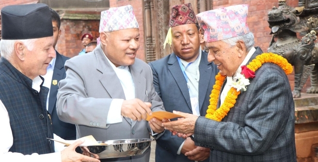 राष्ट्रपति पौडेललाई नवदुर्गा मन्दिरका मूल नाइके सूर्यमान वनमाला, मूल पुजारी रमेश कर्माचार्यलगायत सहायक नाइकेहरुले नवदुर्गाको प्रसाद प्रदान गरेका थिए।