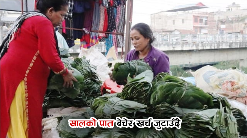 सालको पात बेचेर खर्च जुटाउँदै महिला