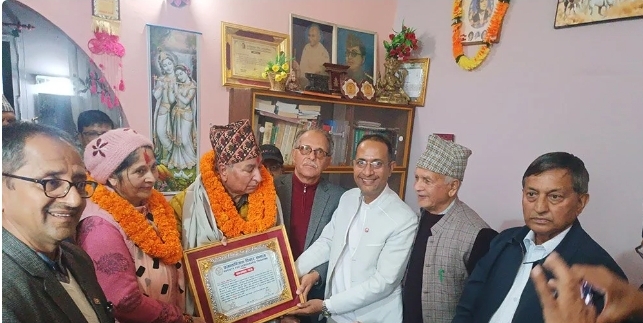 चितवन । प्राध्यापक डा.यज्ञप्रसाद अधिकारीलाई लोकतान्त्रिक योद्धा सम्मान प्रदान गरिएको छ । उनलाई प्रजातान्त्रिक विचार समाजका केन्द्रीय अध्यक्ष कुलचन्द्र वाग्लेले निवासमा पुगेर सम्मान गरेका हुन् ।