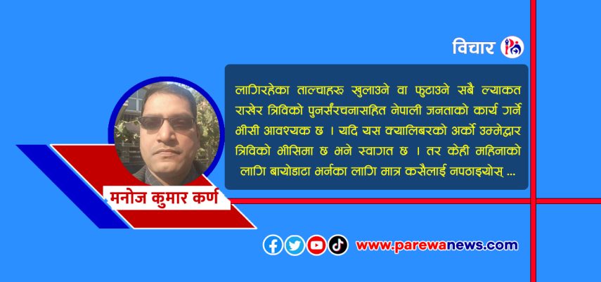 स्तम्भकारले भने याेग्यता नपुगे आफ्नाे बढुवा छुटेमा सहजै स्विकार्न तयार तर नियमित विज्ञापनद्वारा याेग्यहरूकाे प्रवेश र प्राध्यापक छाता संघहरूकाे नियमित अधिवेशन माग्नेमा दृढ छ । यस्ताेमा त्रिविकाे पुनर्संरचना गर्दै नेपालकै समग्र उच्च शिक्षाकाे भविष्य उत्थान गर्नुछ । यस्ताेमा नयाँ भीसी सरकारले दिंदा यतिका अप्राज्ञिक मान्छेले तालाबन्दी निहित स्वार्थमा विचारा आँशिक र करारलाई गलत आश्वासन दिई प्रयाेग गरिरहेकामा दलकाे चश्माबाट उठेर उनै पूर्व भीसी तीर्थराज खनियालाई दिंदा हुन्थ्याे, जसले यी ताल्चाहरू खुलाउने वा फुटाउने सबै ल्याकत राखेर त्रिविकाे पुनर्संरचनासहित नेपाली जनताकाे कार्य गर्नेछन् । यदि यस क्यालिबरकाे अर्काे उम्मेद्वार त्रिविकाे भीसीमा छ भने स्वागत छ । तर केही महिनाकाे लागि बायाेडेटा भर्नलाई कसैलाई नपठाइयाेस् !