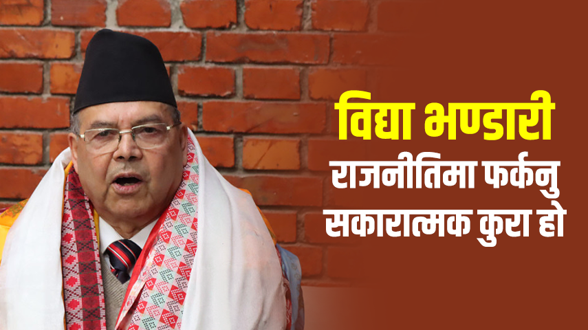 उनले भने, ‘विद्या भण्डारीले वामपन्थी एकताको खाँचो महसुस गर्दै सक्रिय राजनीतिमा फर्कने र एमालेको अध्यक्ष बन्ने निर्णय गरेकी हुन् भने यसलाई सकारात्मक रूपमा लिनुपर्छ।’